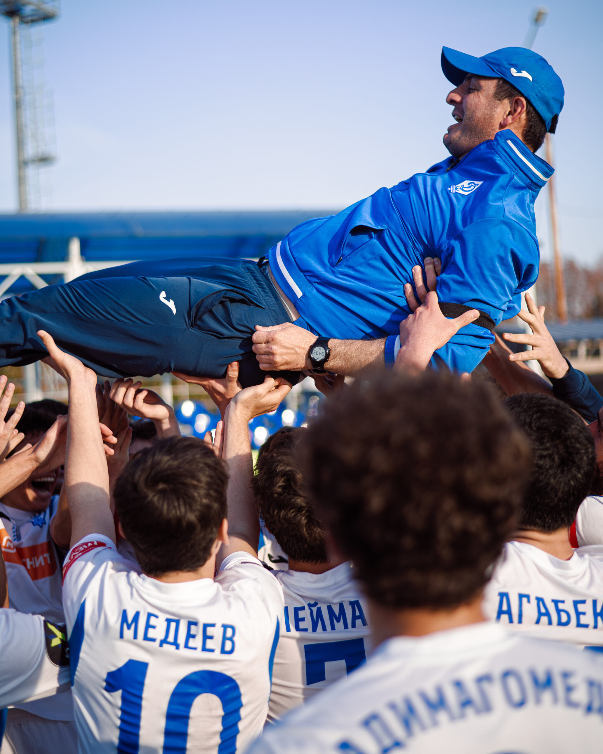 После праздничных объятий и рукопожатий динамовцы станцевали лезгинку, и, конечно, принялись качать своего наставника Нику Поцхверашвили.
